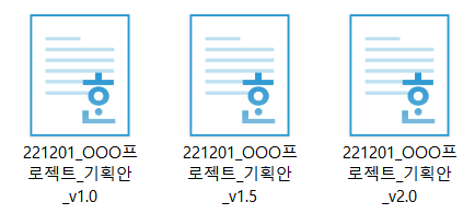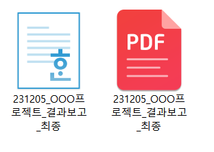 빠르게 공동업무를 진행해야 하는 경우에는 파일명 제일 뒤에 시간단위로 작성할 경우도 있습니다.
