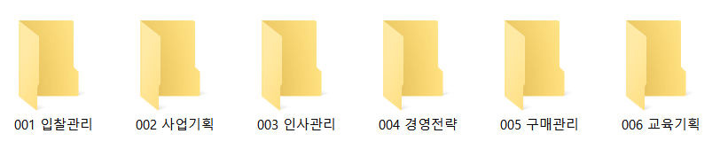 4. 주요 업무분장에 따라 대분류 폴더에 번호를 붙여서 정렬한다.