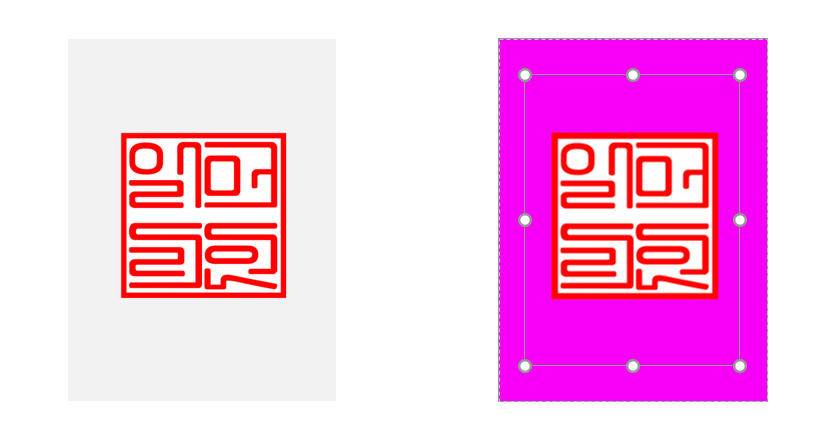 한글에서와 같은 똑같은 방법으로 도장을 만들면 도장이 검은색으로 변하고 흰 배경 없애기가 어렵습니다.