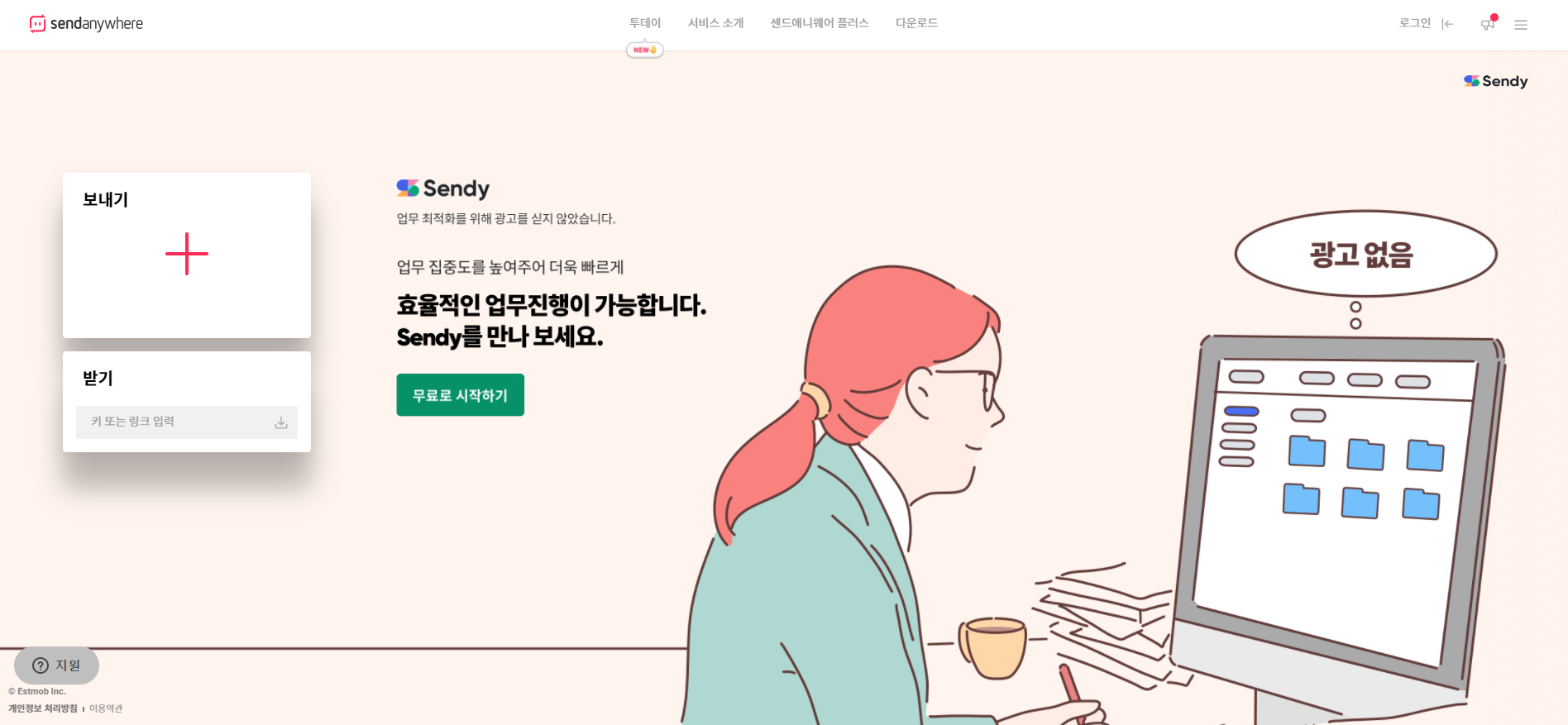 2. 컴퓨터에는 https://send-anywhere.com/ko/ 사이트에 접속한다.