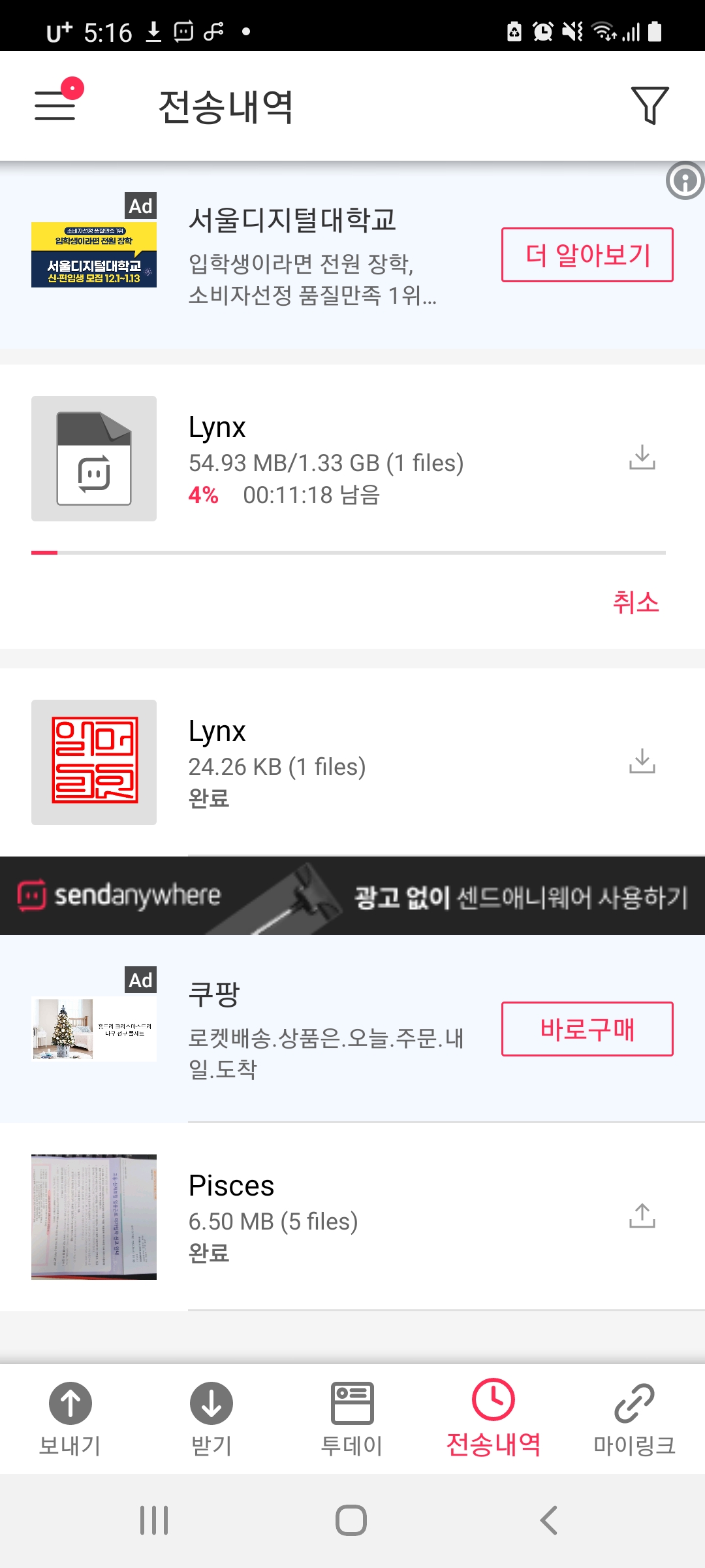 6. 내 스마트폰에는 SendAnywhere 폴더에 저장된다. 끝!!