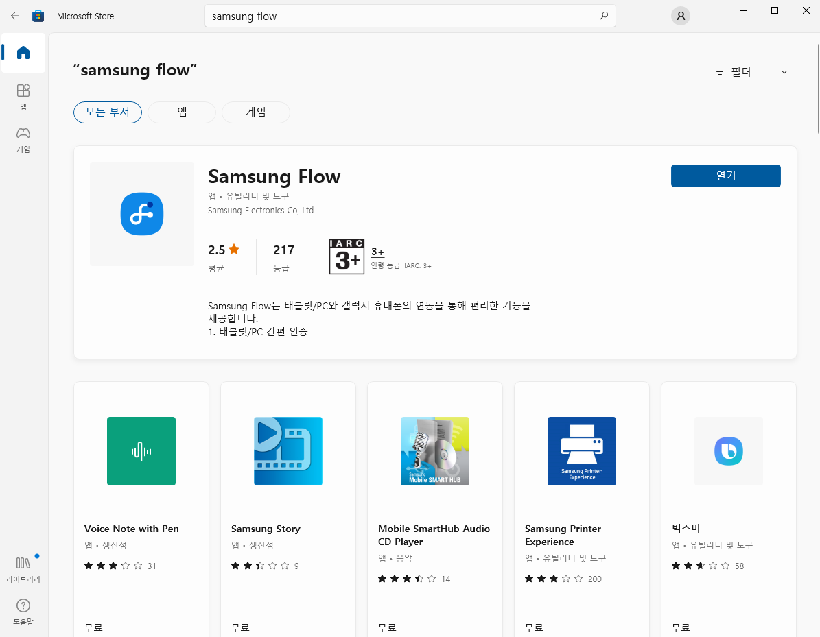1-2. samsung flow를 선택하고 다운로드 후 설치한다.