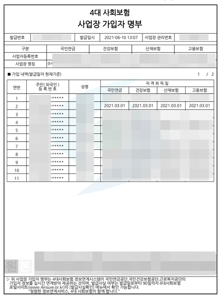 회사에서 4대보험 완납증명서 만큼이나 자주 발급하는 것이 4대보험 가입자명부가 아닌가 합니다.
