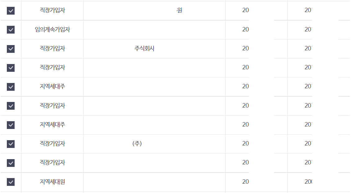 - 기타 지역세대원, 직장가입자, 지역세대주, 임의계속가입자 등을 알수 있습니다.