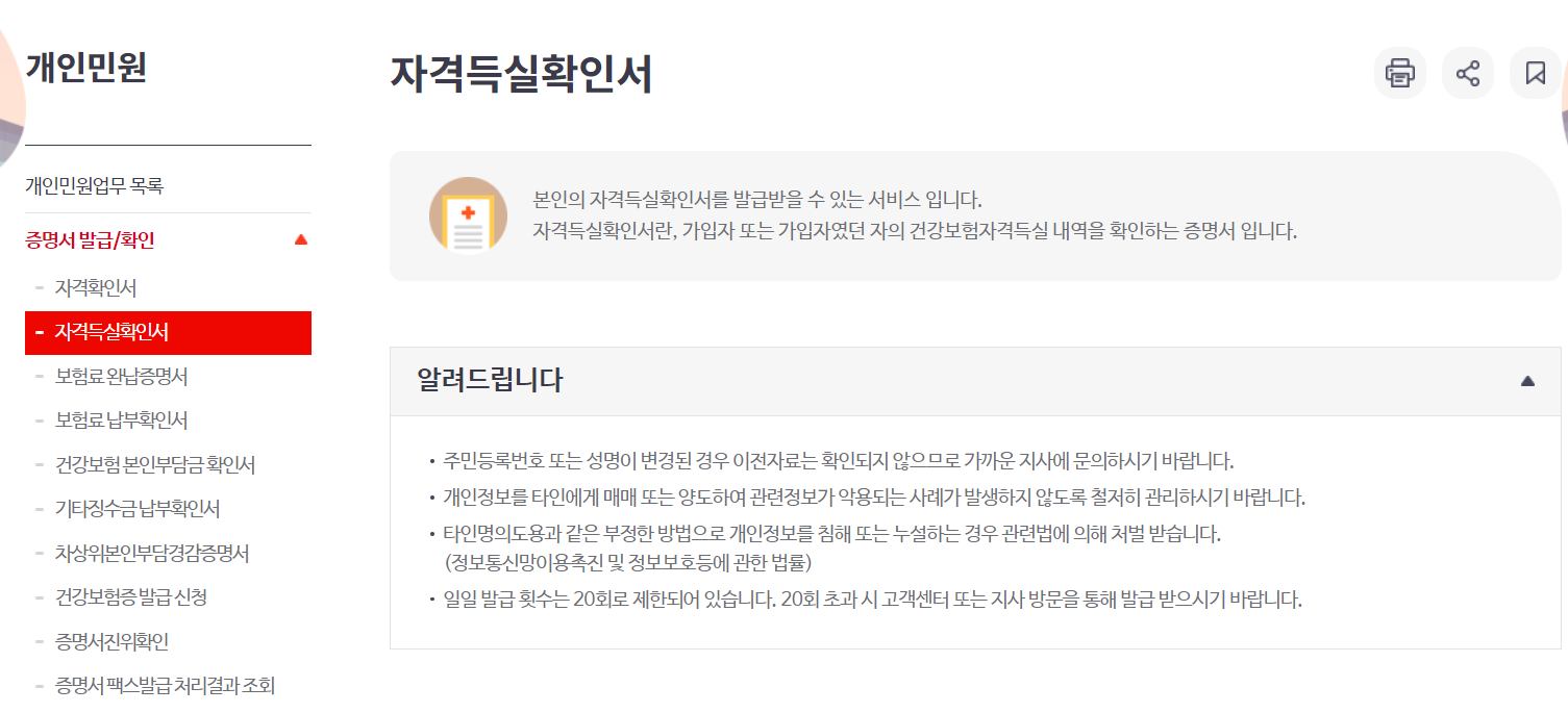 지금까지 건강보험자격득실확인서, 건강보험자격확인서 발급에 대해서 알아봤습니다.