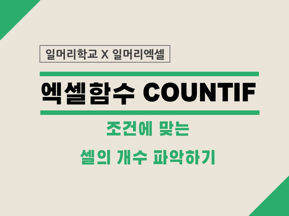 먼저, 조건에 맞는 셀의 갯수만 파악할때 쓰는 함수는 COUNTIF 함수입니다.