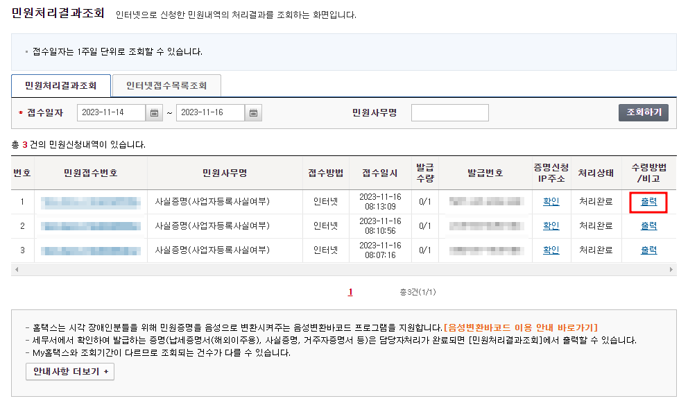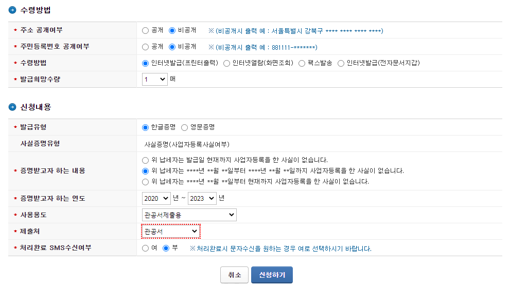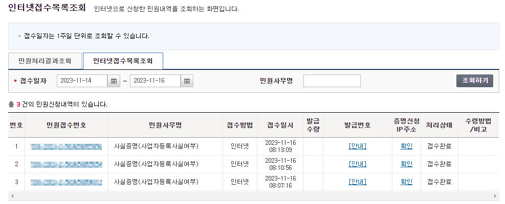 사실증명 처리기한은 다시 한번 확인해주세요.