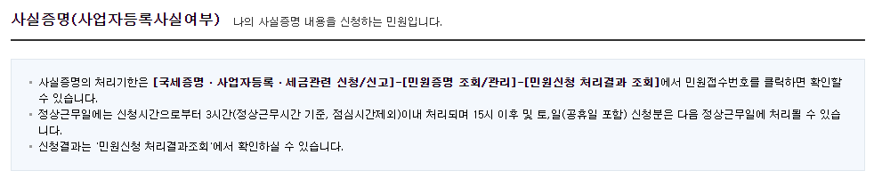 요약하면 국세청 홈택스 홈페이지 > 민원증명 > 사실증명신청 > 사실증명 (사업자등록사실여부) 이었는데..