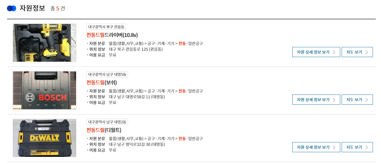 전동드릴도 이제는 가까운 행정복지센터에서 빌릴 수 있답니다.